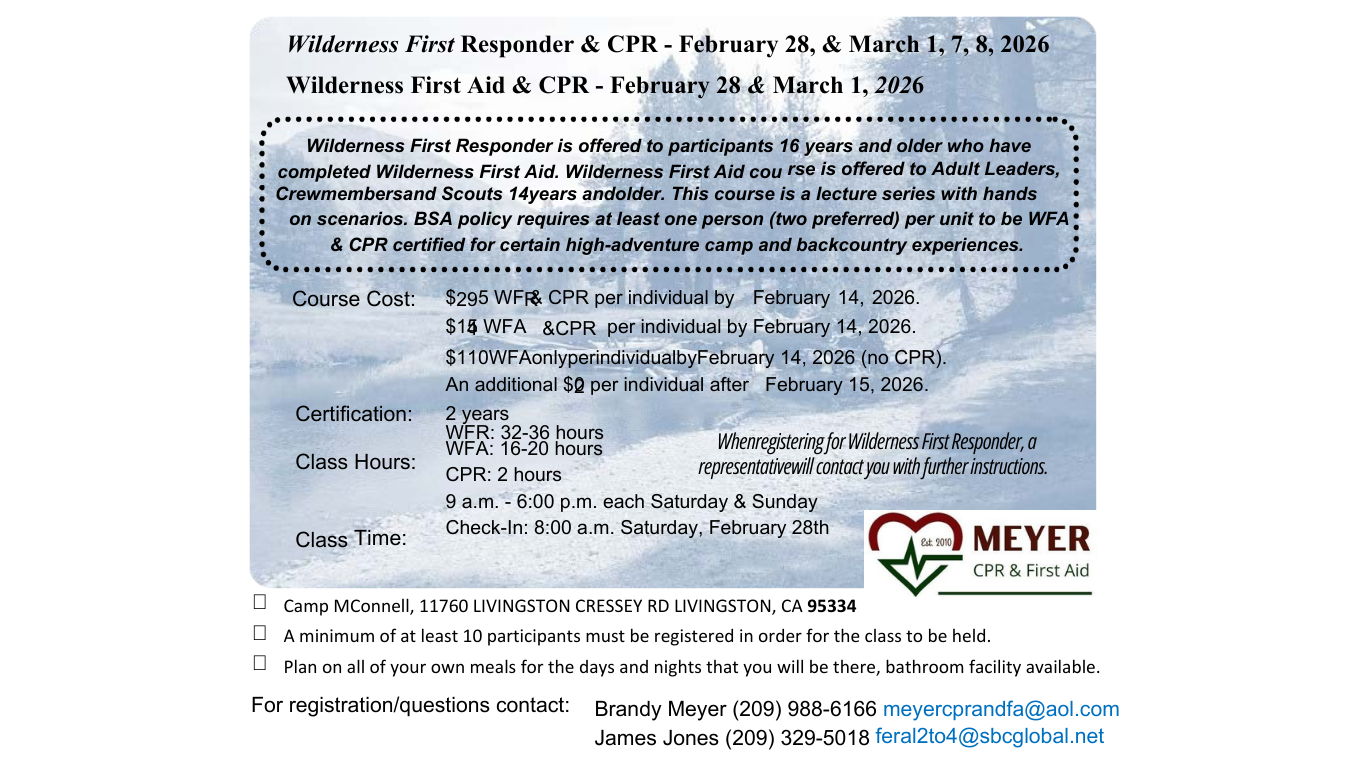 Wilderness First Aid and CPR & Wilderness First Responder and CPR 2026